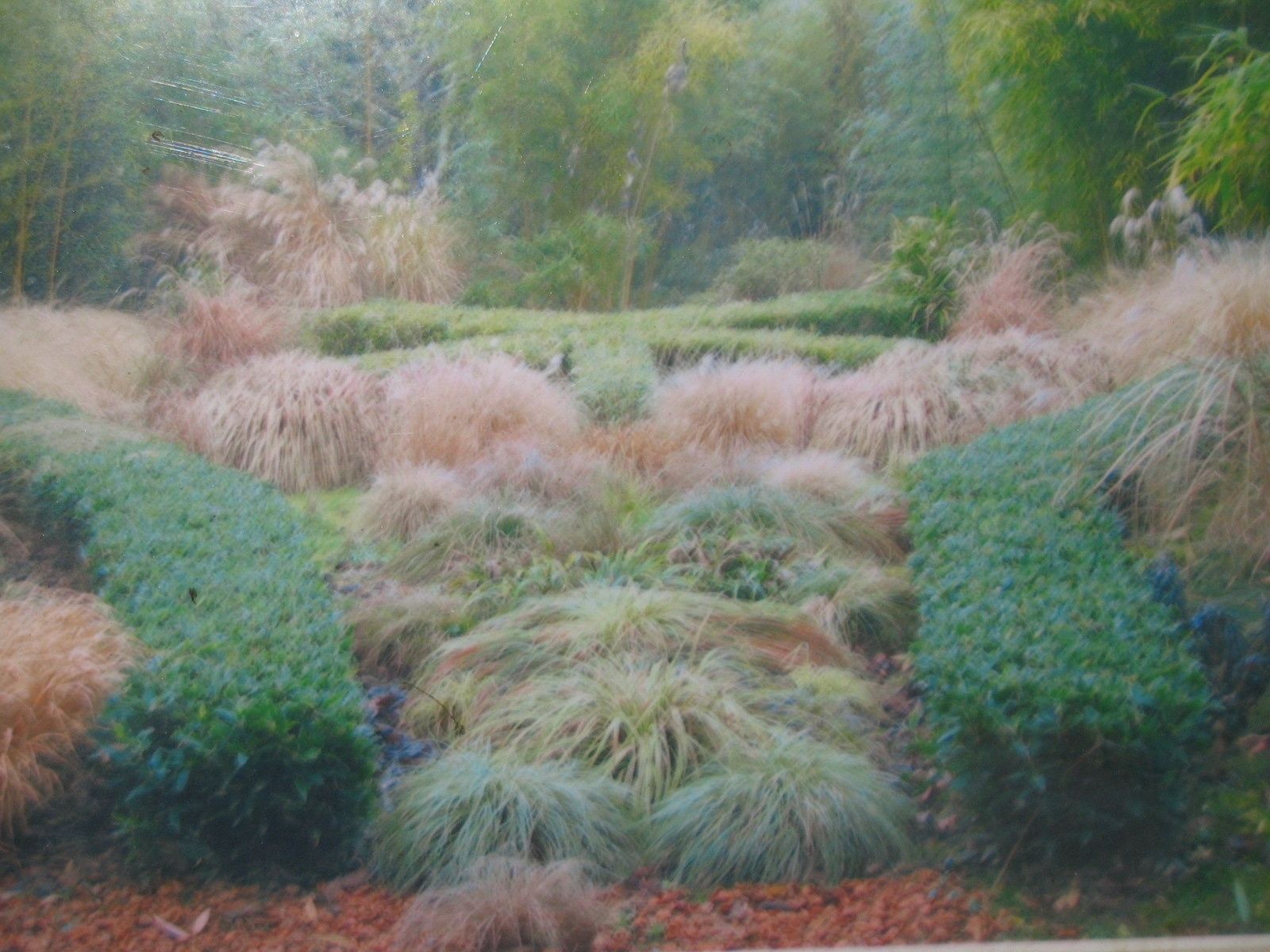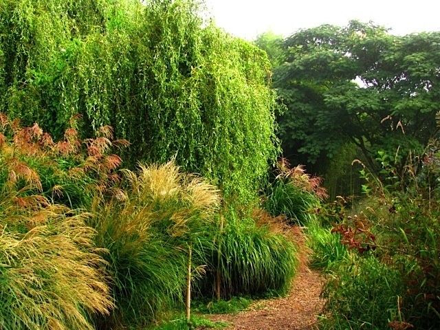 Les Miscanthus sinensis et le Bambou acheté à Planbuisson dans mon jardin (photos ci-dessous) :