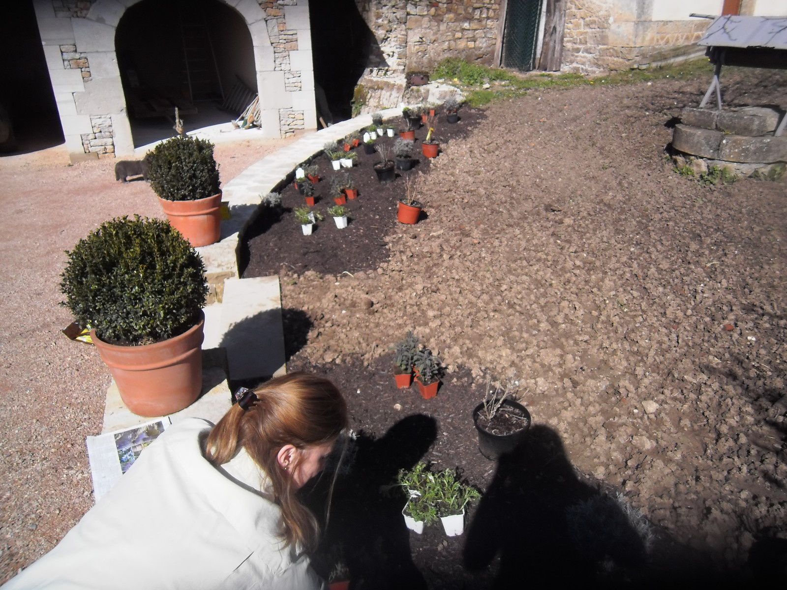 De retour de Hidcote, je me suis lancée dans la réalisation d'un mixed border. La première photo illustre mon projet (reprise dans le catalogue Promesses de fleurs). La deuxième photo illustre l'emplacement où je réalise ce projet La troisième photo présente mes plantations : Lavandes Hidcote (of course !), Lavandula grosso, Boules de Buis, Anthemis Sauce Hollandaise, Népétas faassenii walker's low, Salvia nemerosa, Salvia superba bleu, Salvia officinalis purpurascens, Caryopteris cladonensis grand bleu, Buddleia black night violet, Buddleia nana blue, Perowskia. Pour la quatrième photo : Rendez-vous en août pour le résultat !!!