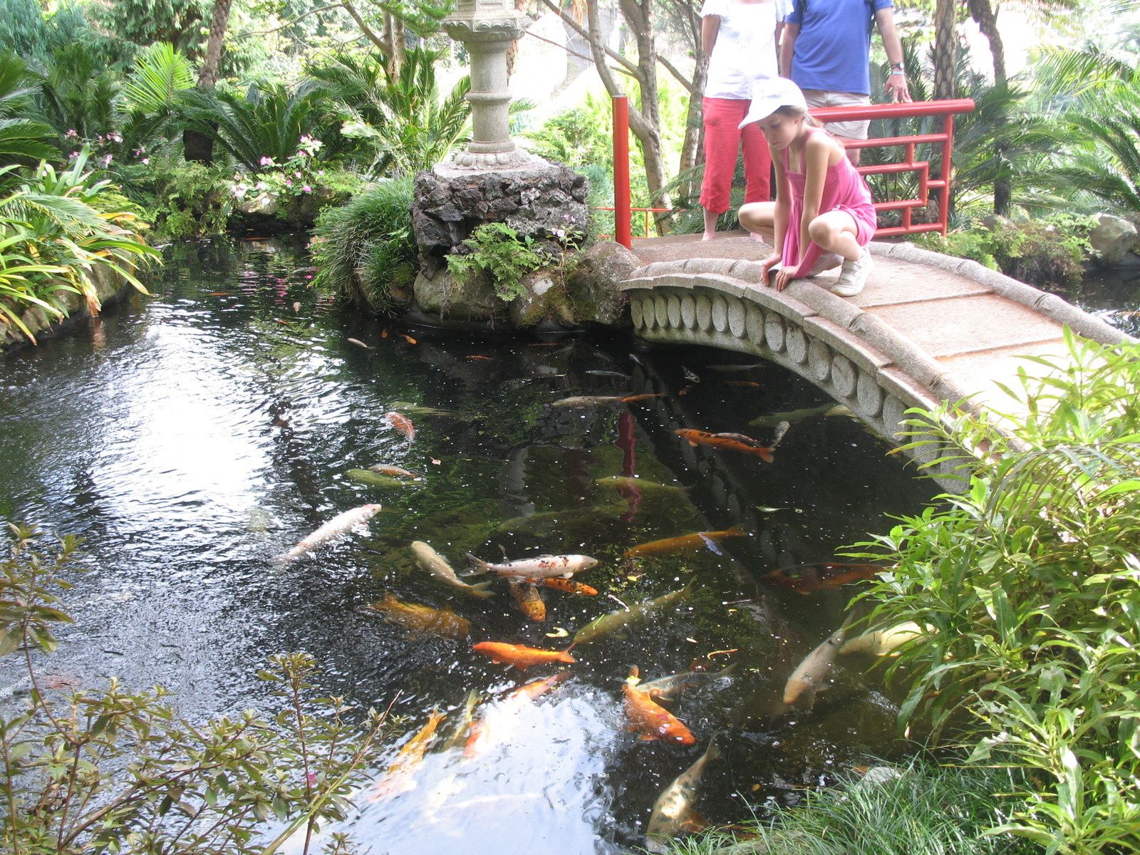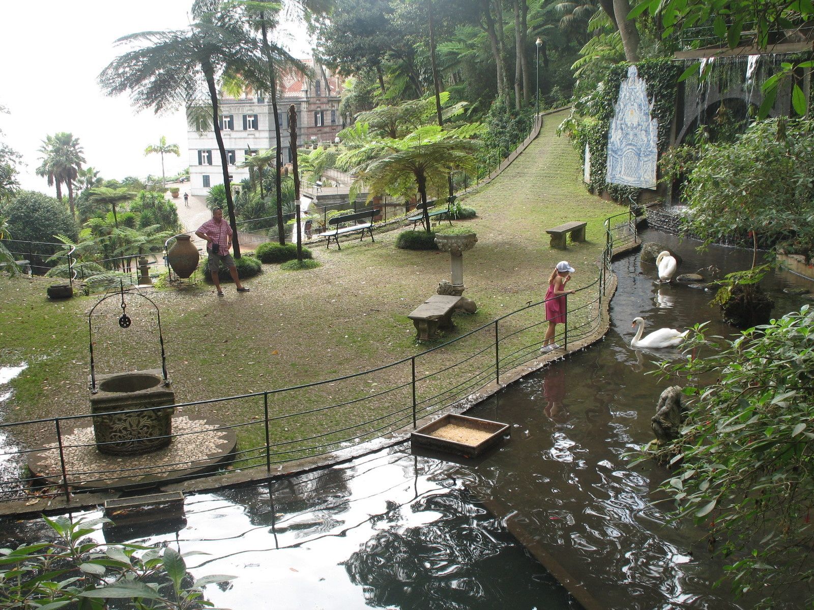 L’ambiance des jardins de la Quinta de Monte Palace, demeure du XVIIIème siècle est plutôt tropicale avec ses fougères arborescentes, ses sous-bois extraordinaires de Cycas, Bégonias, Strelitzias (bien fleuris à l'automne)… C’est aussi, en son cœur un jardin orientaliste aux ponts, statues, lanternes japonaises, et aux étangs garnis de carpes Koï.