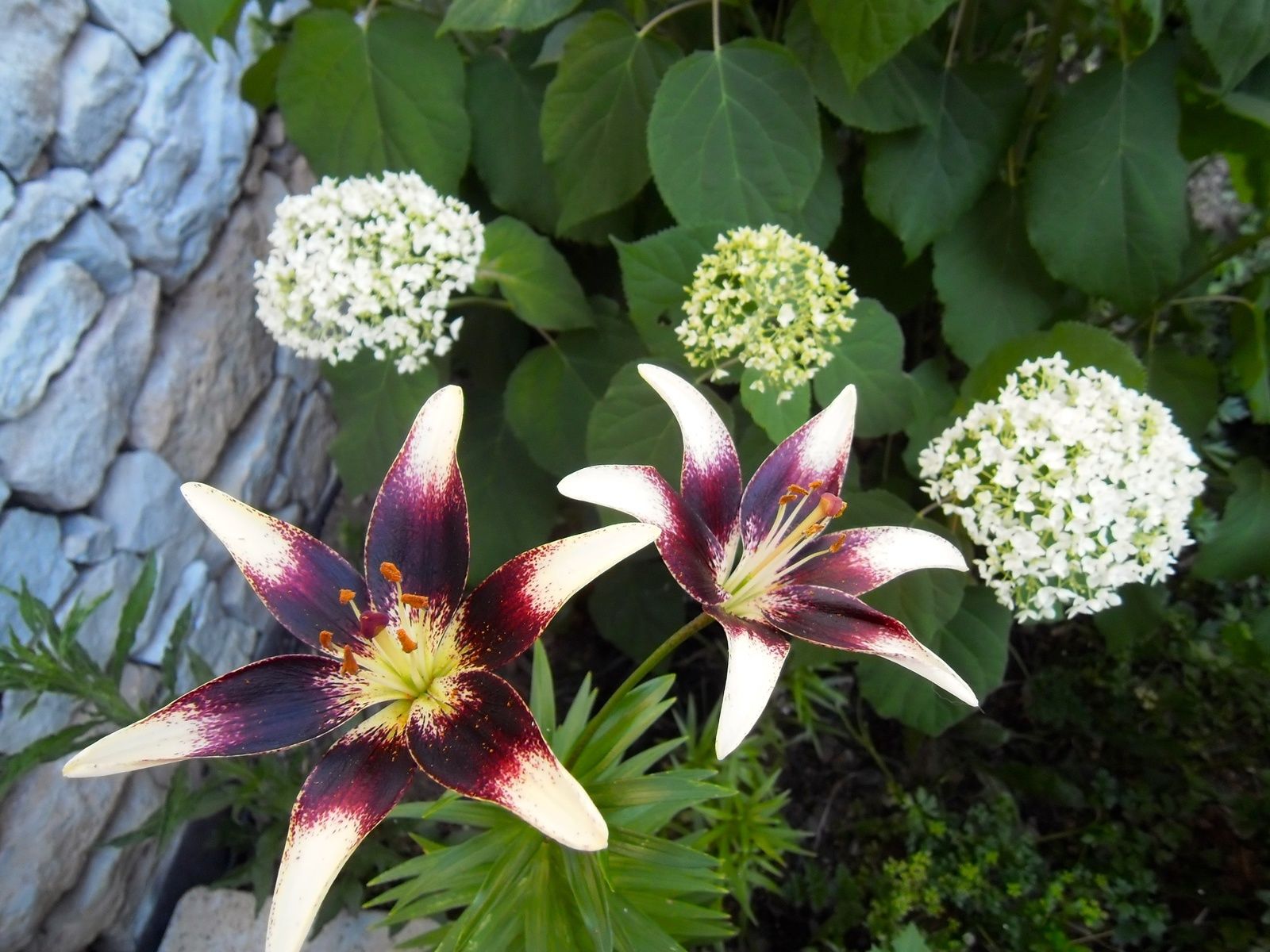 Les Lys 'Contraste' alternent avec les Hydrangea 'Annabelle' en juin. Les Penstemom prendront le relais en juillet et avec un peu de chance, ils cohabiteront un peu...